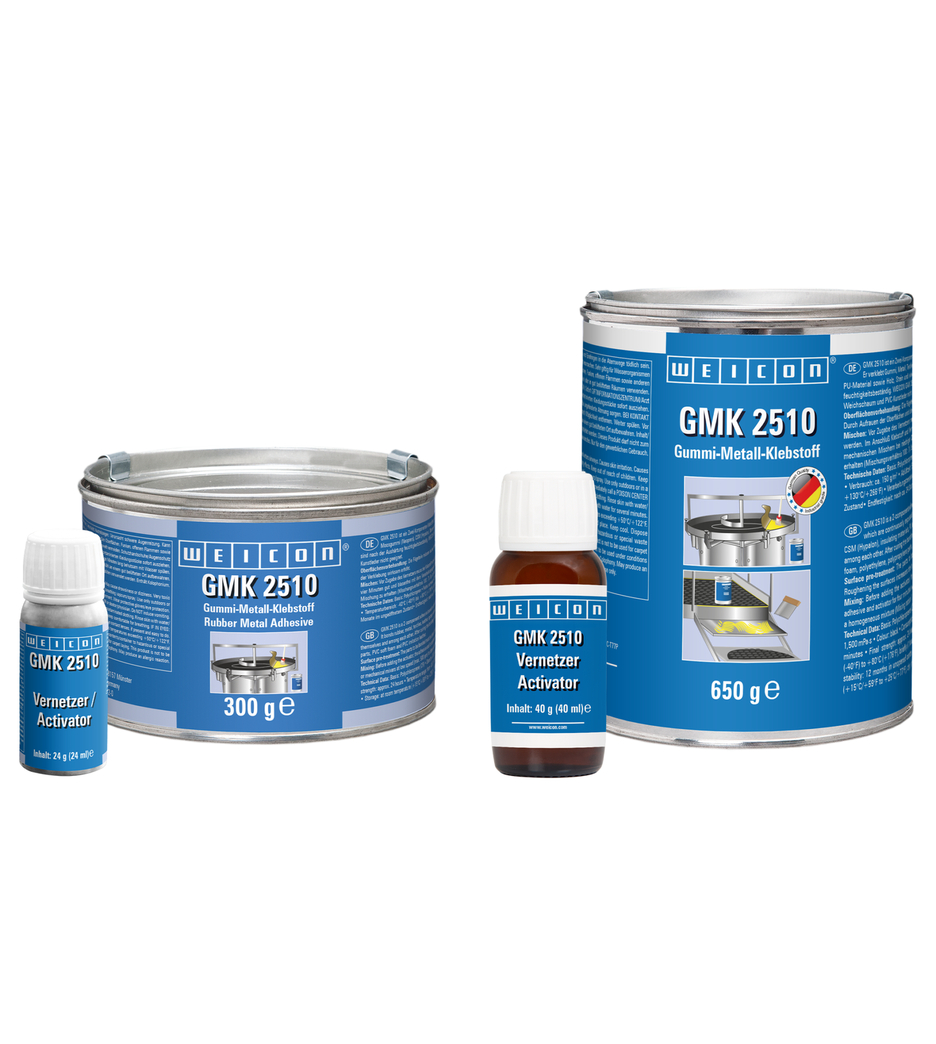 GMK 2510 is a 2-component adhesive based on polychloroprene for the full-surface and permanently elastic bonding of parts continuously exposed to dynamic loads. The advantage compared to 1-component contact adhesives is the significantly improved adhesion and higher temperature resistance. GMK 2510 bonds rubber, metal, textiles, leather, sponge rubber (neoprene), CSM (Hypalon), insulating materials, PU materials with an adhesive coating, wood, stones and many plastics. After curing, the joint is resistant to humidity. WEICON GMK 2510 is not suitable for materials such as polystyrene foam, polyethylene, polypropylene parts, PVC soft foam and PVC imitation leather.
