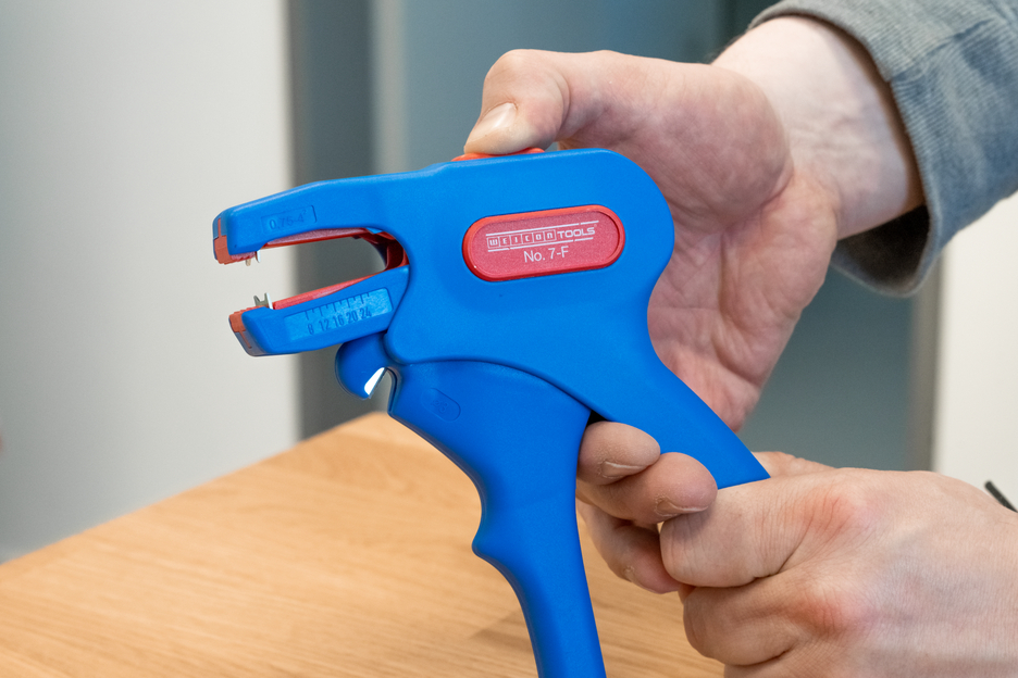 The WEICON Wire Stripper No. 7-F is particularly suitable for 2- or 3-core PVC-insulated flat cables from 0.75 - 4.0 mm². The tool offers a fine-tuning mechanism, which can be adjusted to various positions. The stripping tool has a visual length scale from 8 - 24 mm. A well-accessible side cutter is integrated in the tool, which is suitable for cable diameters up to 3 mm and has replaceable blades.