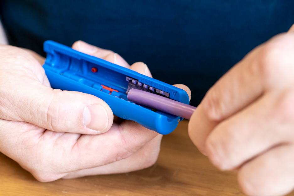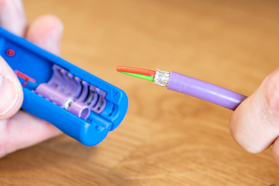 With the Profibus Stripper No. 2, the outer sheath and the underlying shield can be cleanly cut in order to strip the Profibus cable according to its connector. The optical length scale in the module can be used to select the appropriate stripping length to prepare the Ethernet cables to fit the FastConnect connector. For the stripping lengths of 17 mm, 20 mm, 24 mm and 30 mm, the usual dimensions are visually marked in the module. The stripper was developed to cut Profibus cables in the range of 5.5 mm to 8 mm with two pairs of blades simultaneously for a precise fit. The cutting pattern creates an ideal preparation for FastConnect connectors - even with different cable diameters. If necessary, the pairs of knives in the half-shells can be replaced or renewed as modules.
