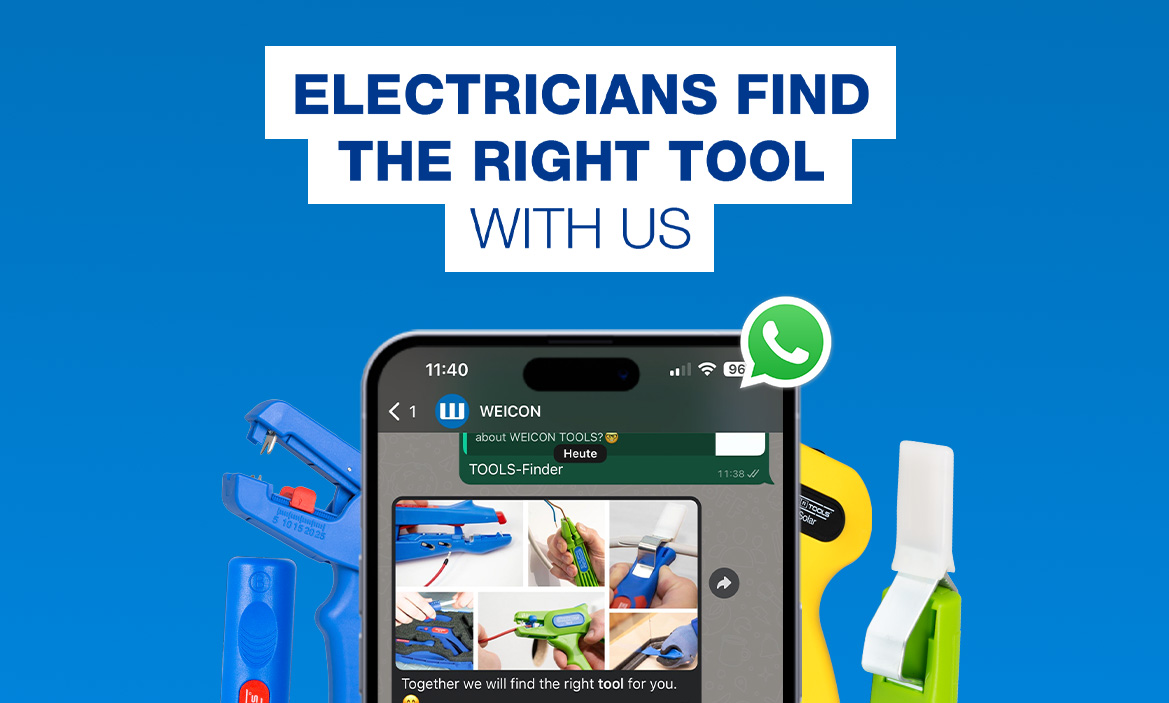 Vous souhaitez nous contacter à tout moment et partout, nous envoyer des photos de votre application ou utiliser le TOOLS-Finder de WEICON ? Vous avez des questions sur nos produits, vous cherchez rapidement l'interlocuteur adéquat ou vous souhaitez commander facilement par WhatsApp ? Nous avons rendu tout cela possible pour vous ! Utilisez notre service WhatsApp ou abonnez-vous à notre newsletter WhatsApp ou à notre nouveau canal WhatsApp.