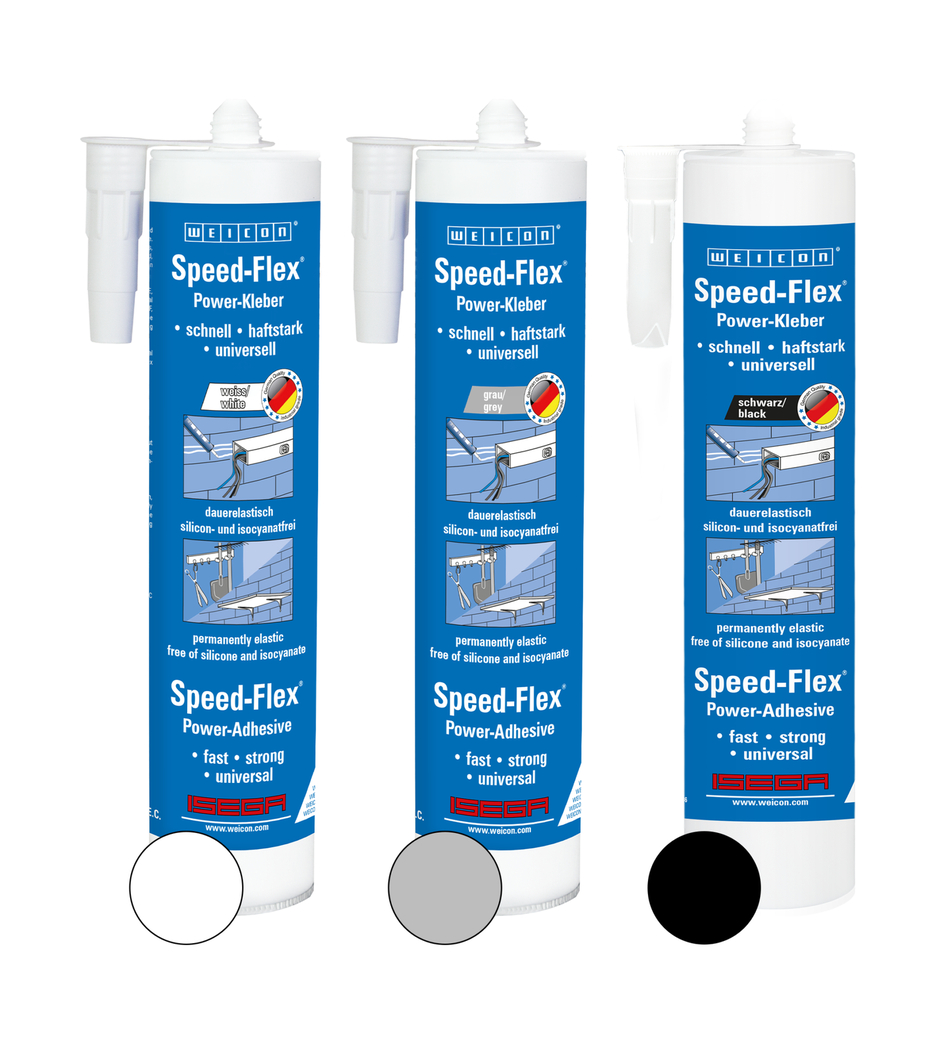 Speed-Flex est fortement adhésif, pâteux et stable, peut être peint «mouillé sur mouillé», résiste au vieillissement, aux intempéries, aux UV et est exempt de silicones, d‘isocyanates, d‘halogènes et de solvants. Speed-Flex est certifié ISEGA et s‘utilise comme adhésif en technologie alimentaire. Le scellant adhésif a une base de polymères MS avec une adhérence initiale extrêmement forte et convient pour coller des métaux, de nombreuses matières plastiques, la céramique, le bois, le verre et la pierre. Speed-Flex remplace les méthodes de fixation traditionnelles comme les vis, les chevilles, les rivets etc. Grâce à sa très forte adhérence initiale, il permet de coller même sur des surfaces verticales à l‘intérieur et à l‘extérieur. Le produit s‘utilise dans la construction sèche et l‘agencement intérieur, la construction métallique, la chaudronnerie, la construction d‘appareils, la ventilation et de la climatisation, la construction de stands d‘exposition et l‘agencement de magasins et partout où les silicones ou les produits siliconés sont inappropriés.