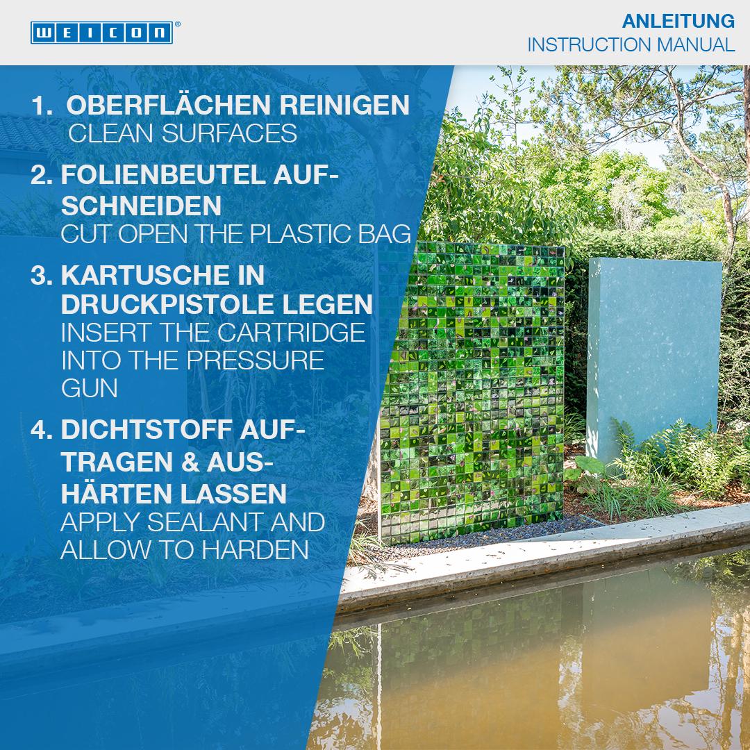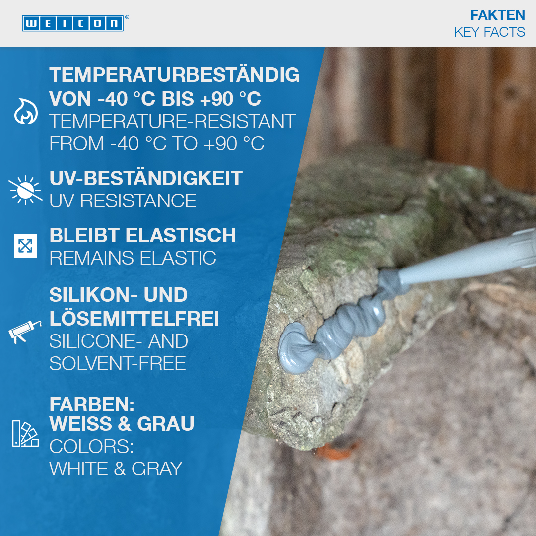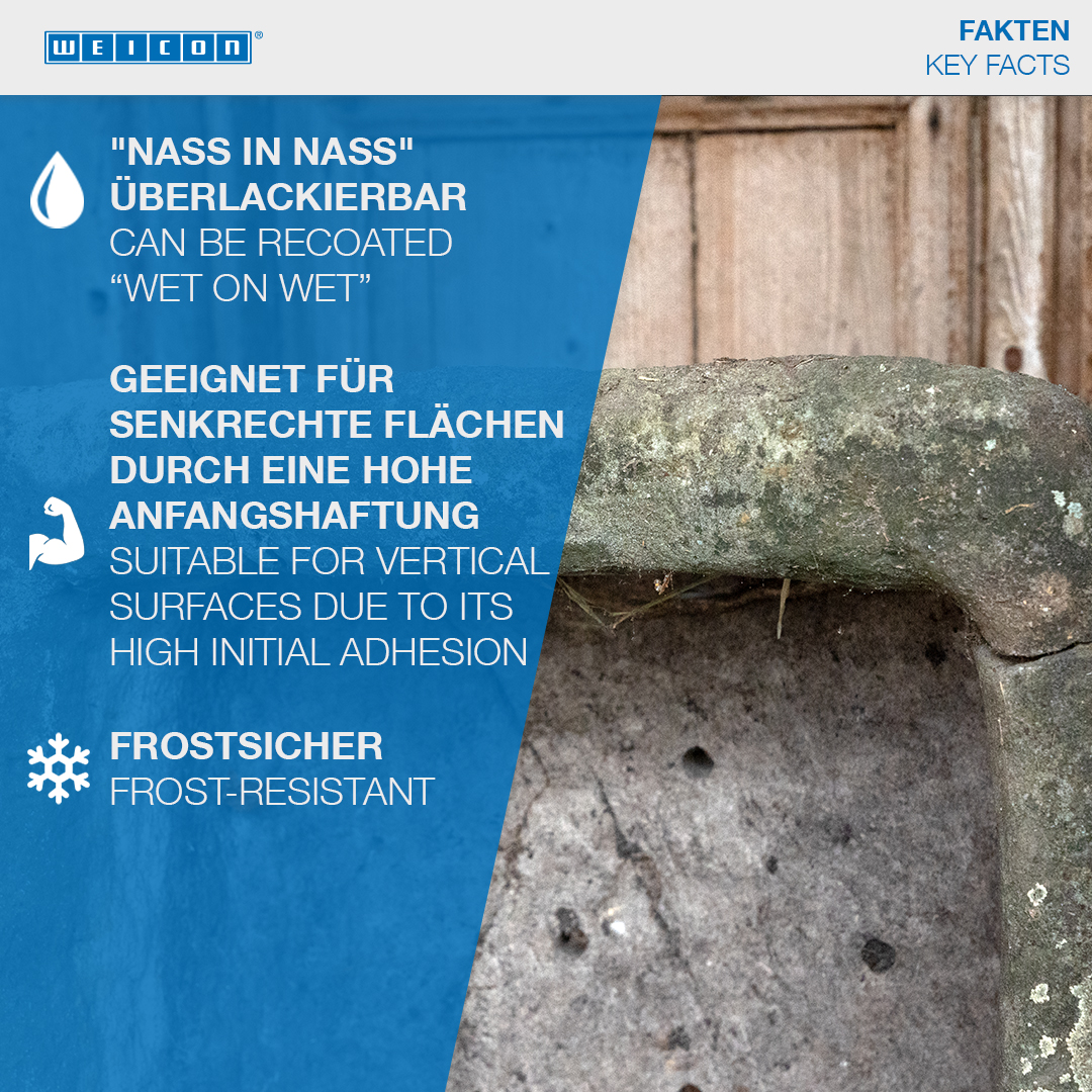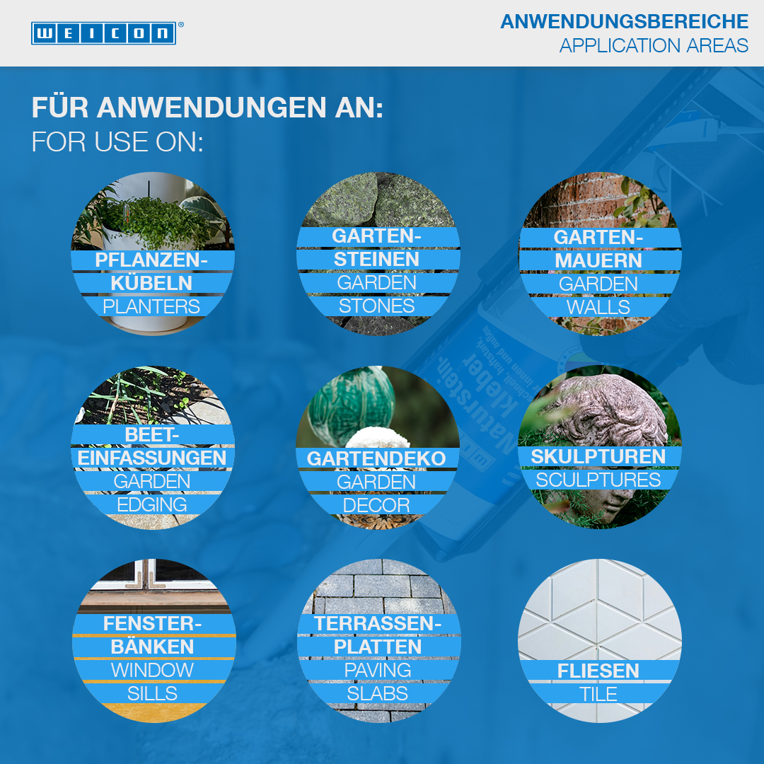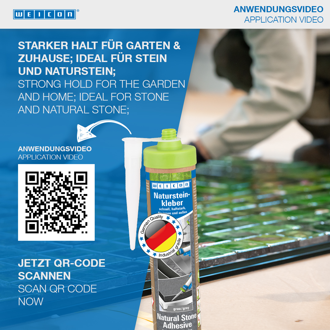 La colle WEICON pour Pierres Naturelles est une colle à forte adhérence pour le montage de pierres naturelles, de pierres et de céramiques. Grâce à sa très forte adhérence initiale et à la montée rapide du pouvoir adhésif, les collages sont possibles même sur des surfaces verticales, comme les murs. La colle à pierre convient à de nombreuses applications à l'intérieur et à l'extérieur. Elle résiste au gel, présente une résistance élevée aux températures de -40 °C à +90 °C ainsi qu'aux intempéries et aux UV. La colle pour pierres naturelles durcit rapidement et a une résistance finale très élevée. Après le durcissement, la colle peut être poncée et reste élastique, ce qui permet de compenser les mouvements. La colle à pierre est exempte de silicone, d'isocyanates, d'halogènes et de solvants. Elle peut être utilisée dans les applications les plus diverses - que ce soit pour le collage d'appuis de fenêtre, de carrelages, de plinthes, de plinthes décoratives ou de marches d'escalier. La Colle WEICON pour Pierres Naturelles adhère très bien sur les matériaux les plus divers, comme le bois, les matériaux dérivés du bois, les matières plastiques, les métaux, le verre et les supports minéraux. Elle est disponible en gris et en blanc.