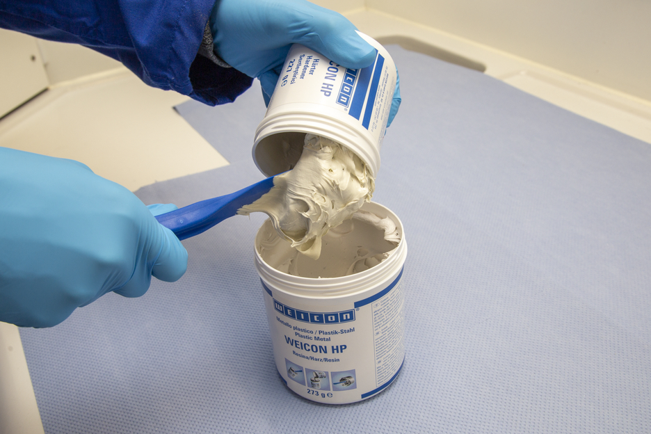 WEICON HP est un système bicomposant de résine époxyde avec une vie en pot plus longue, une énorme résistance aux chocs ainsi qu’une haute élasticité résiduelle et résistance à l'abrasion. En raison de son extrême allongement à la rupture, WEICON HP peut être utilisée pour des collage réparations, le revêtement et la protection contre l’usure des équipements fortement sollicités. Cet adhésif possède une très bonne adhérence surtout sur des surfaces mouillées et humides et adhère même sous l’eau aux différents matériaux.