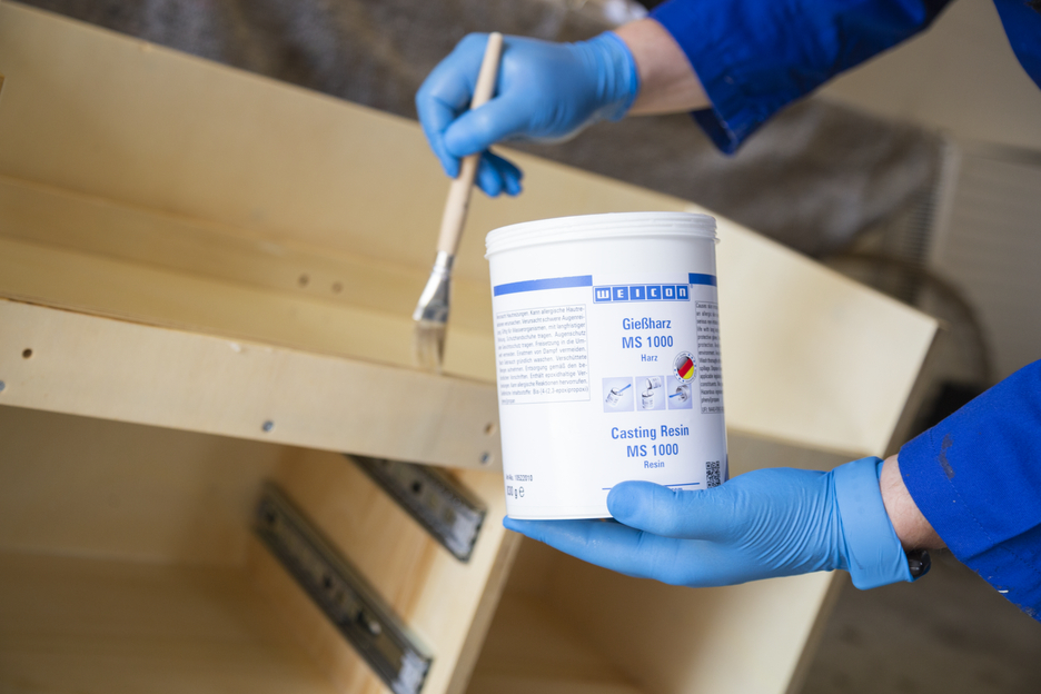 WEICON Gießharz MS 1000 ist ein transparentes und sehr fließfähiges Epoxidharz-System mit hoher mechanischer Festigkeit. Es eignet sich für ein breites Anwendungsspektrum. MS 1000 haftet gut auf Metall, Holz, Hartschäumen sowie vielen Kunststoffen. Es kann für großflächige Verklebungen oder zum Laminieren von Composite Gewindebuchsen und Schrauben verwendet werden. Durch die sehr niedrige Viskosität eignet sich das Epoxidharz-System auch sehr gut zum Vergießen von elektrischen Bauteilen. Es kann bei der Herstellung von Faserverbundwerkstoffen, im Werkzeug- und Formenbau, in der Elektroindustrie, im Maschinenbau und in vielen weiteren industriellen Bereichen eingesetzt werden. MS 1000 weist eine gute Benetzung und Durchdringung von Glasgewebe auf und eignet sich daher gut zum Laminieren von Glas-, Aramid- und Kohlefasern zur Herstellung faserverstärkter Teile. Es lässt sich ebenfalls problemlos mit verschiedenen Füllstoffen (pulverförmig, faser- und gewebeartig) versetzen.