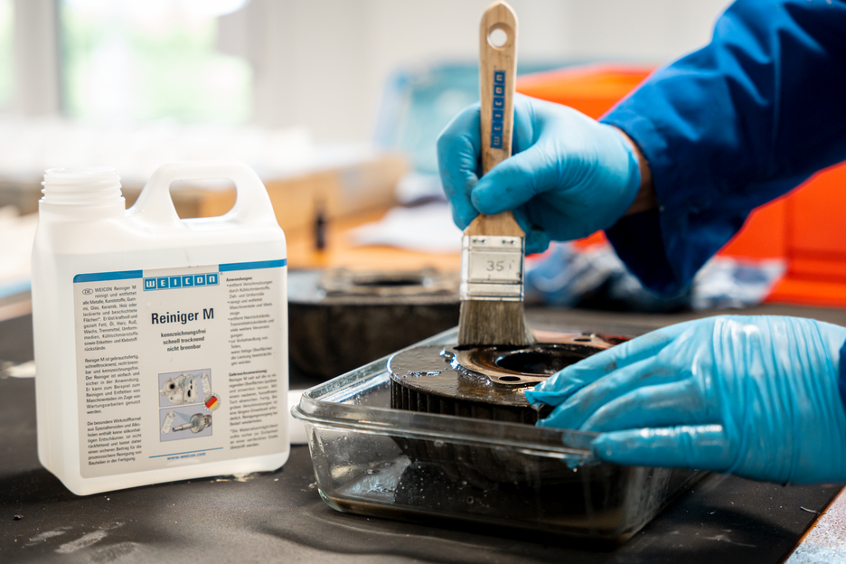 WEICON Detergente M pulisce e sgrassa tutti i metalli, plastica, gomma, vetro, ceramica, legno o superfici verniciate e rivestite. Rimuove in modo efficace e mirato grasso, olio, resina, fuliggine, cera, agenti distaccanti, mezzi di formatura, lubrorefrigeranti, nonché residui di etichette e adesivi. Detergente M è pronto all’uso, asciuga rapidamente, non infiammabile ed esente da simboli di rischio. Il detergente è semplice e sicuro nell’utilizzo. Ad esempio può essere applicato per pulire e sgrassare parti di macchine e attrezzature. La speciale formula del principio attivo a base di tensioattivi e alcoli speciali non contiene antischiuma contenenti silicone, non reintegra i lipidi e quindi contribuisce in modo affidabile alla pulizia dei componenti in produzione.