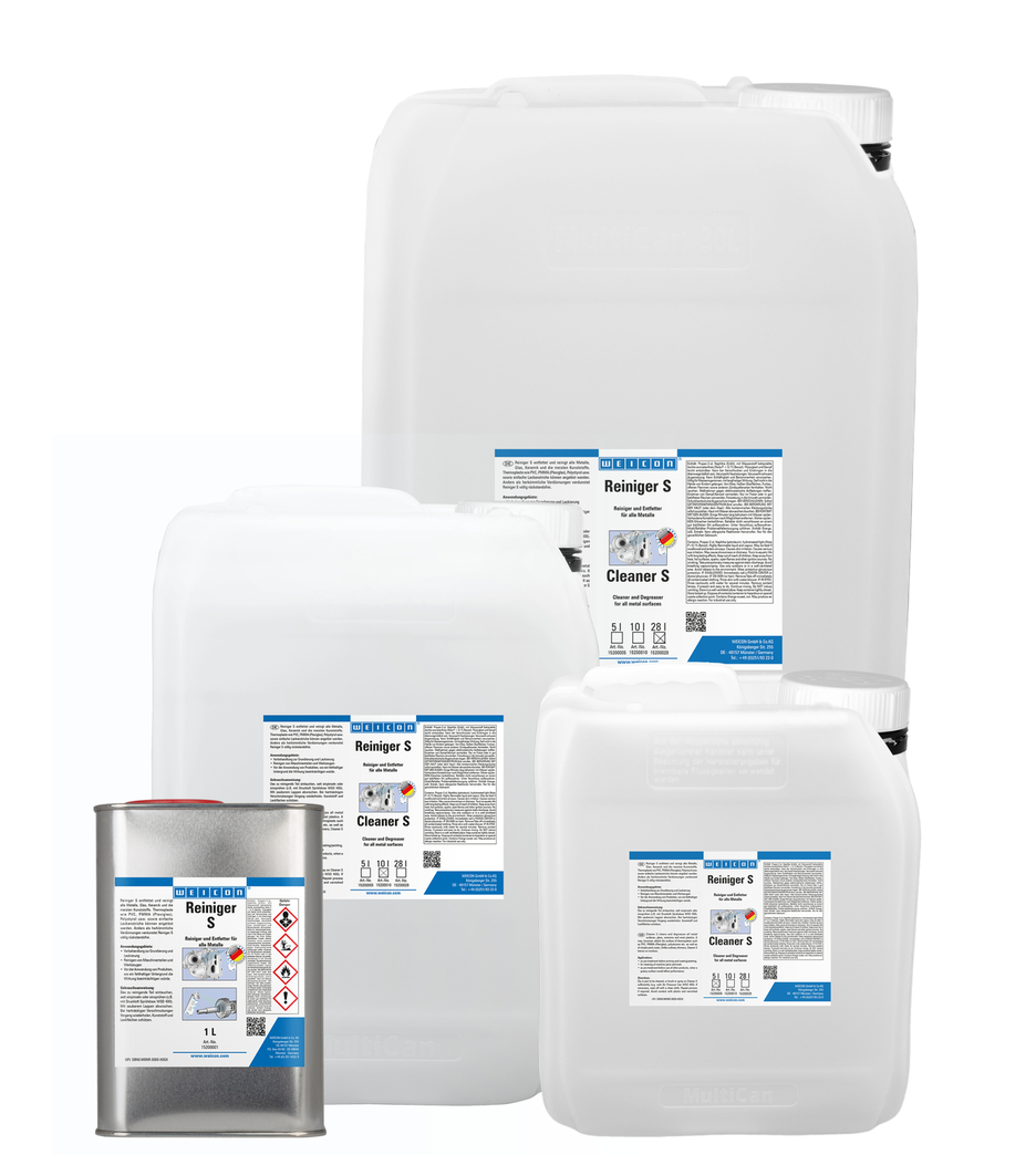 WEICON Detergente S pulisce, sgrassa ed evapora velocemente senza lasciare residui. Detergente S è utilizzabile su tutti i metalli, vetro, ceramica e molti tipi di plastiche. Viene consigliato per pulire e sgrassare prima dell‘applicazione di fondi e verniciatura, per pulire parti di macchine o prima dell’applicazione di altri prodotti WEICON dove non sia consentito un fondo unto che potrebbe incidere negativamente al risultato finale.