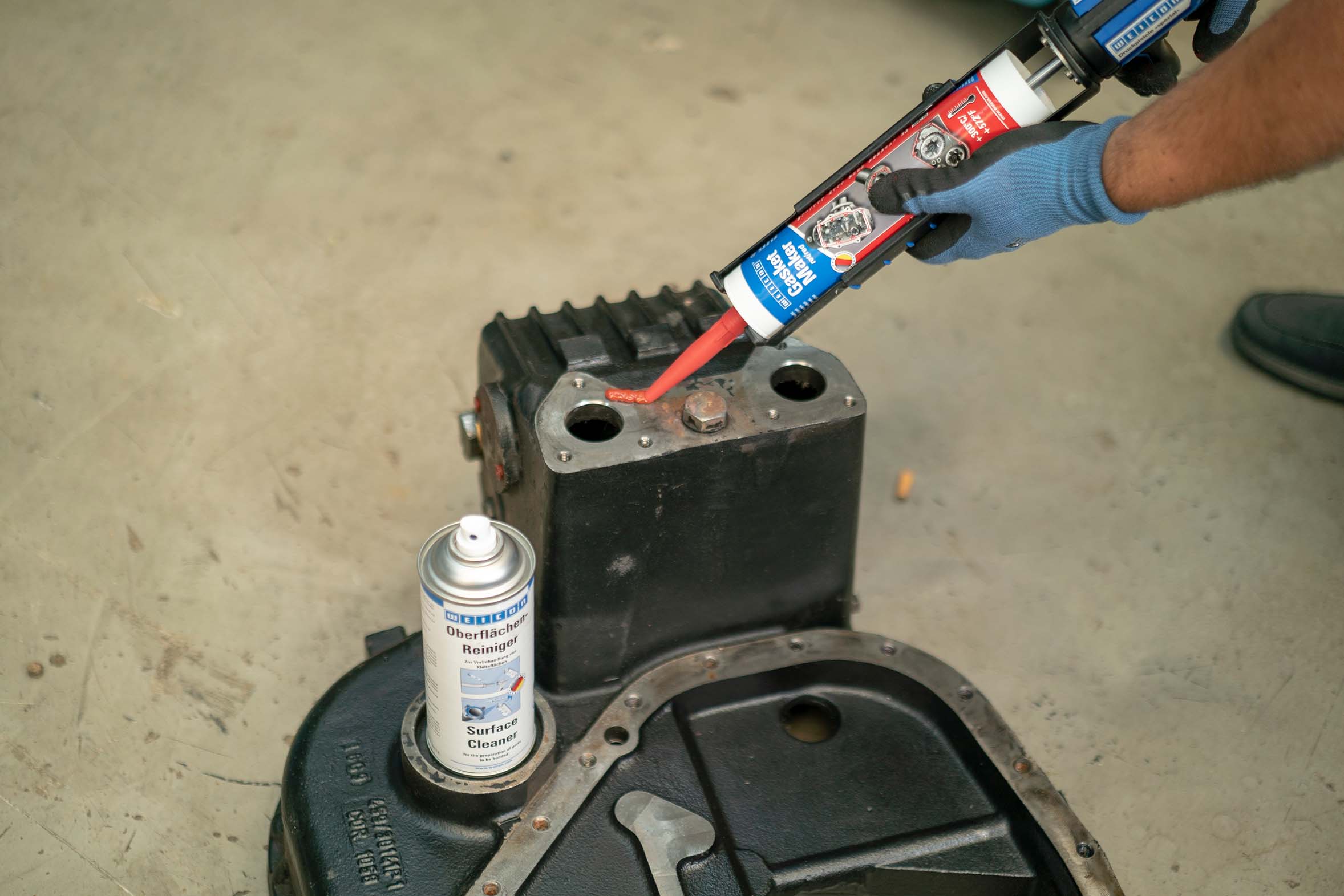 WEICON Gasket Maker è un composto sigillante di alta qualità, permanentemente elastico, sviluppato per assorbire i movimenti dinamici. Le proprietà permanentemente elastiche del sigillante garantiscono una tenuta affidabile, anche in presenza di movimenti e vibrazioni continue, come nel caso delle flange dei riduttori. L'uso del sigillante impedisce la fuoriuscita del lubrificante.