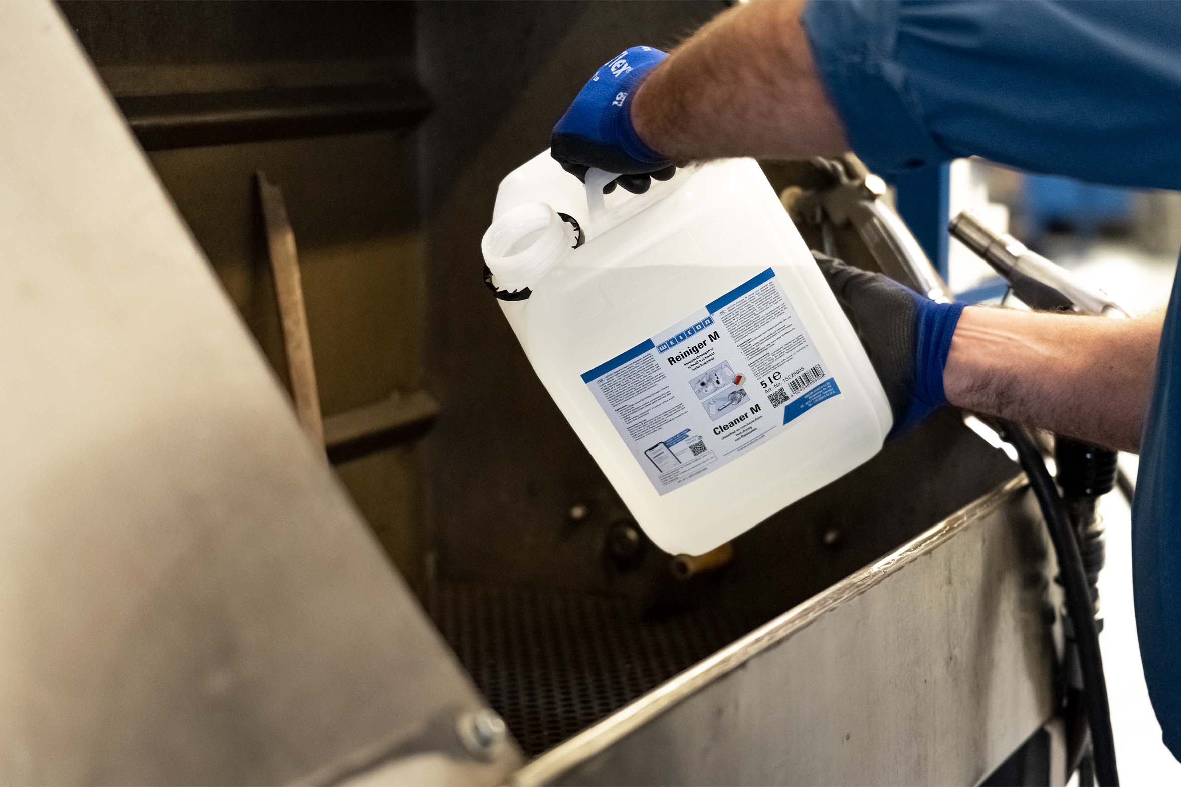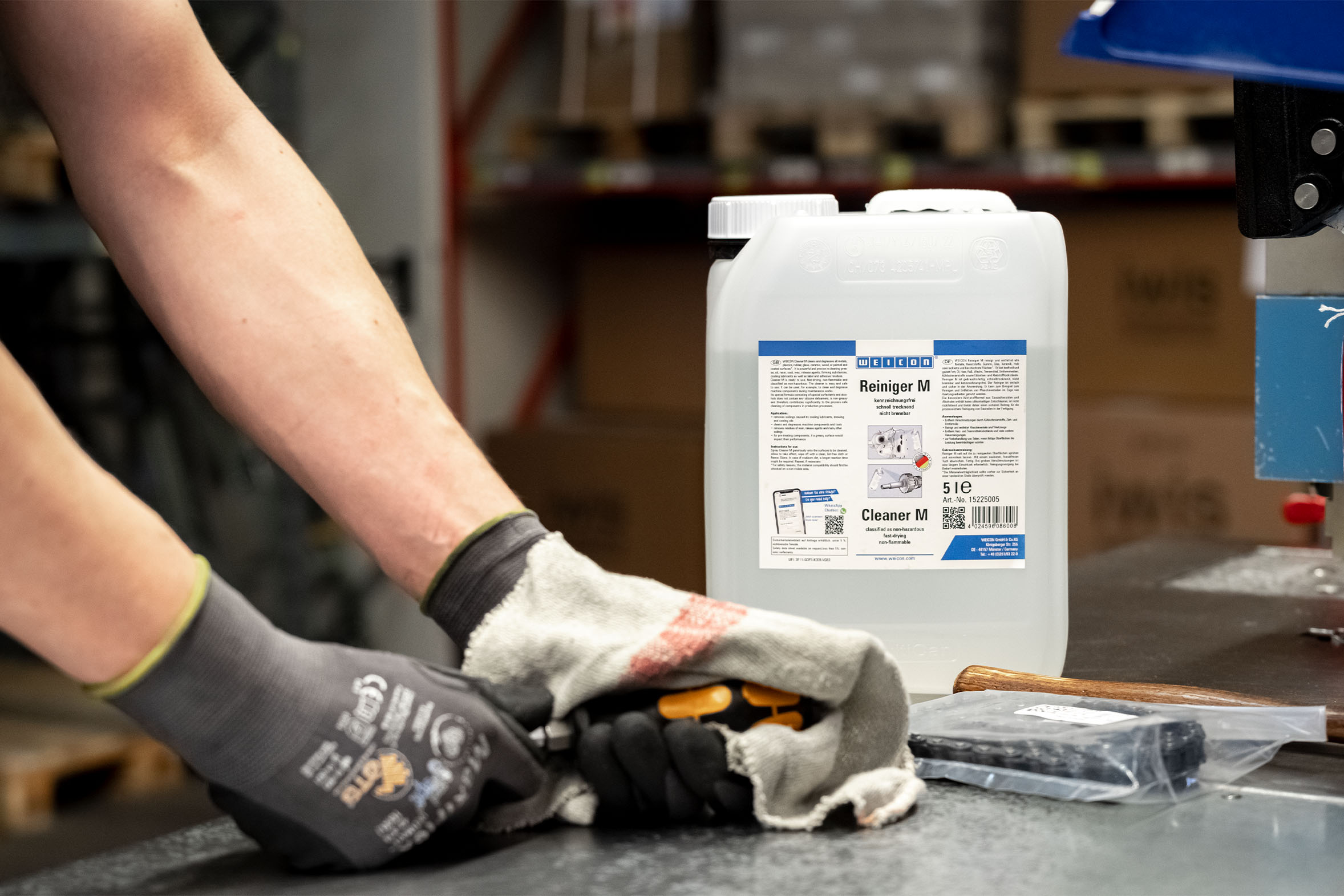 WEICON Detergente M è ideale per la pulizia accurata dei componenti. Il riempimento dei tavoli di lavaggio dei pezzi con il detergente speciale consente di pulire efficacemente i pezzi contaminati da olio e altre impurità. Il detergente senza etichetta assicura una rimozione affidabile dello sporco. La speciale formula con ingredienti attivi del detergente offre un basso potenziale di rischio, che contribuisce ad aumentare la sicurezza sul lavoro.