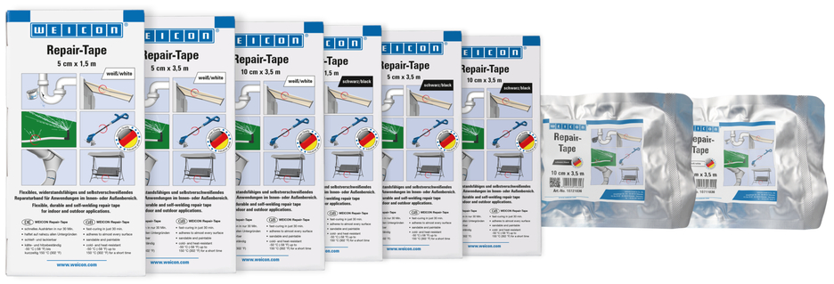 Nastro flessibile, resistente agli urti e autosaldatore per riparazione in plastica rinforzata con fibra di vetro adatto a veloci riparazioni d’emergenza in ambiente interno ed esterno. Il nastro per riparazione è impregnato di una resina speciale e viene attivato tramite il contatto con l'acqua. Si distingue per un'applicazione molto semplice e rapida e dispone di ottime proprietà adesive praticamente su tutti i fondi. Entro 30 minuti il nastro catalizza completamente ed è caricabile. Dopo la catalizzazione il Tape è levigabile e verniciabile Possiede una elevata termostabilità e resistenza chimica da -50 °C /(-58 °F) per breve tempo fino a +150 °C (302 °F). Il Tape può essere lavorato senza utensili aggiuntivi e serve per la riparazione affidabile e durevole nei settori dell’industria, artigianato, domestico, il campeggio e per il fai-da-te.