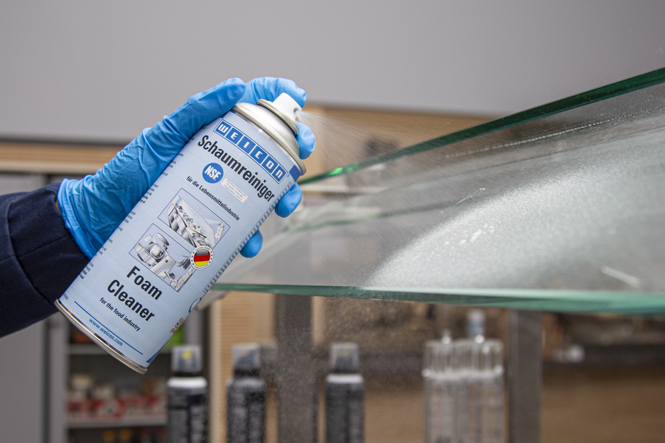 WEICON Schiuma Detergente NSF è applicabile universalmente, può essere utilizzato per pulire e sgrassare superfici impermeabili e per rimuovere contaminazioni su superfici in vetro, plastica e tessuti. Grazie alla registrazione NSF A1, è adatto per l’utilizzo in aree sensibili, come l’industria alimentare e delle bevande, l’industria farmaceutica e l’industria cosmetica. Lo spray è adatto per la pulizia di nastri trasportatori che vengono a contatto con alimenti (come nella produzione o nella vendita al dettaglio). Rimuove la sporcizia da alloggiamenti di macchinari e pulisce bilance, schermi piatti, schermi touch, navigatori ecc… WEICON Schiuma Detergente NSF rimuove varie contaminazioni, come oli, grassi, impronte digitali, fuliggine, nicotina, polvere, residui di insetti. Può essere utilizzato là dove non è possibile utilizzare detergenti acidi o alcalici.