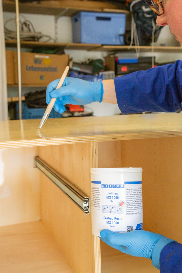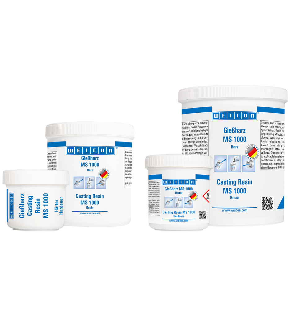 WEICON Resina MS 1000 è un sistema di resina epossidica trasparente e molto fluido con alta forza meccanica. È adatto a un’ampia gamma di utilizzo. MS 1000 aderisce bene su metallo, legno, espansi rigidi e molte plastiche. Può essere utilizzato per l'incollaggio di grandi superfici o per la laminazione di boccole filettate e viti in composito. Grazie alla sua bassa viscosità, il sistema a base di resina epossidica è perfettamente adatto anche per la colatura su componenti elettrici. Trova utilizzo nella costruzione di compositi di fibra, di macchinari, di attrezzature, modelli, nell’industria elettrica, nonché in tanti altri settori industriali. MS 1000 mostra una buona bagnatura e penetrazione in tessuto di vetro ed è quindi adatto per la laminazione di fibre di vetro, di aramide e in carbonio per la produzione di parti rinforzate con fibre. È caricabile con diversi materiali d‘apporto (in forma di polvere, fibre o tessuto).