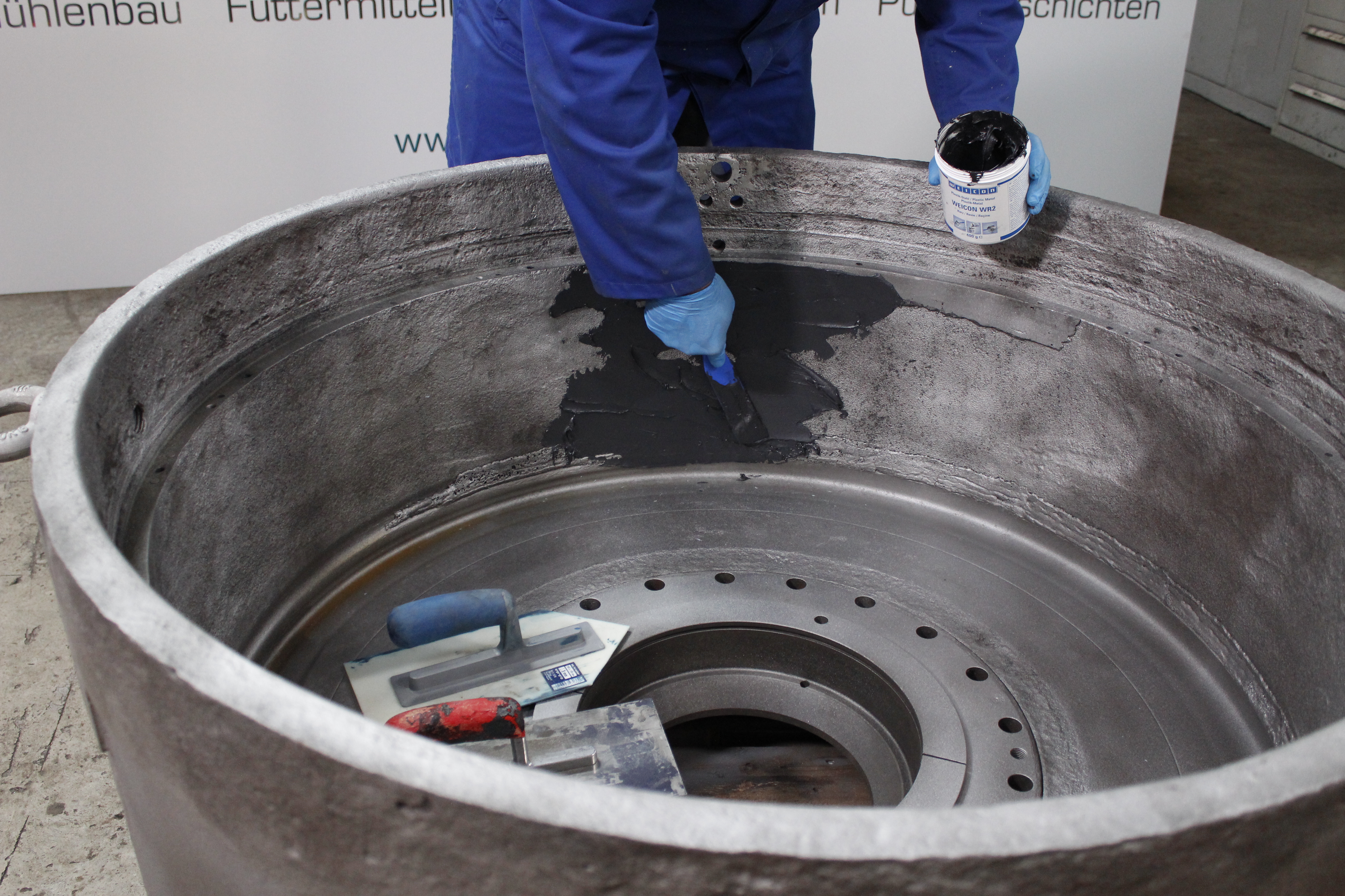 WEICON WR2 fornisce una protezione pastosa particolarmente adatta per i settori nei quali non è possibile la lavorazione di masse colabili, come p. es. nella riparazione di convogliatori, guide di scorrimento e scivoli. Il sistema di resina epossidica viene utilizzato anche per impedire l’usura su superfici metalliche esposte ad alta abrasione ed erosione. Trova utilizzo come fondo resistente al logoramento prima del rivestimento con WEICON Ceramico BL WR2 trova utilizzo nella costruzione di macchinari, di attrezzature e apparecchiature nonché in tanti altri settori industriali.