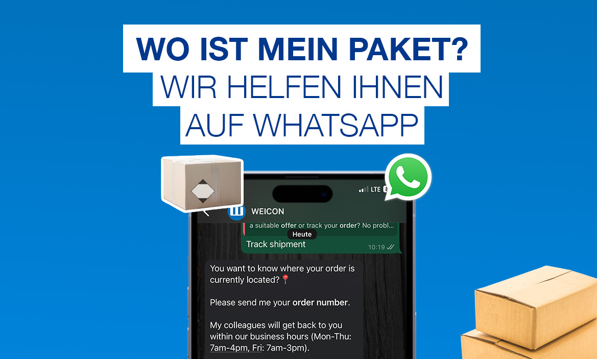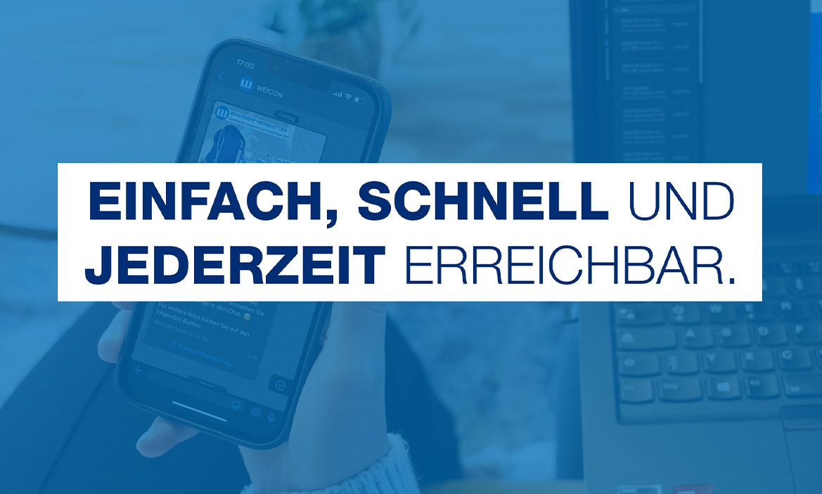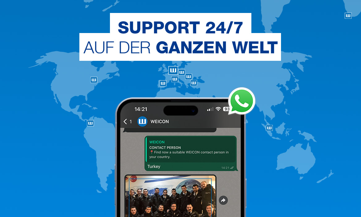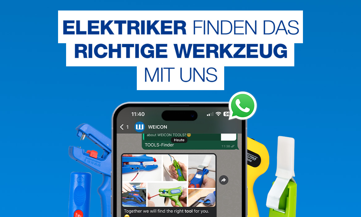 Möchten Sie uns jederzeit und überall kontaktieren, Fotos Ihrer Anwendung senden oder den WEICON TOOLS-Finder verwenden? Haben Sie Fragen zu unseren Produkten, suchen schnell die passende Ansprechperson oder möchten bequem per WhatsApp bestellen? All das haben wir für Sie ermöglicht! Nutzen Sie unseren WhatsApp Service oder abonnieren Sie unseren WhatsApp-Newsletter oder unseren neuen WhatsApp-Channel.